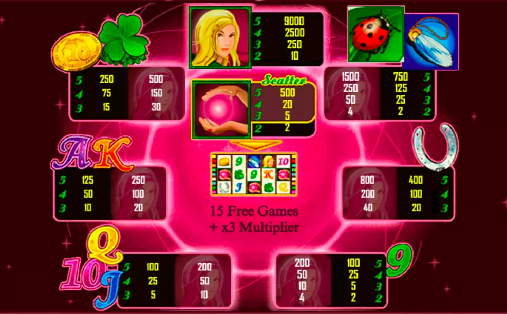 • Вайлды и скаттеры: Lucky Lady и хрустальный шар, соответственно, не просто символы, а ворота к усиленным вознаграждениям и бесплатным вращениям.
